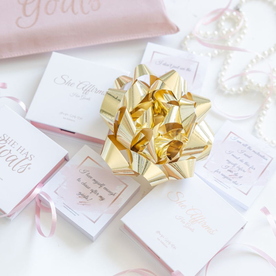 5 x Diamond Pens embossed with "She Has Goals" adorned in pink branded boxes